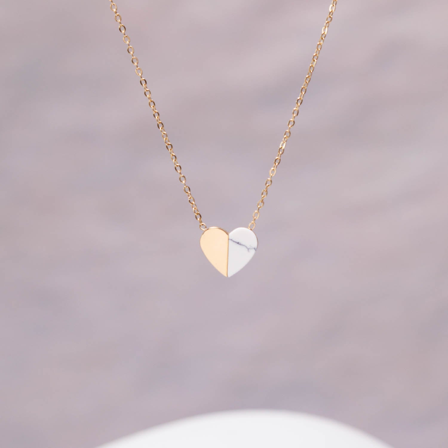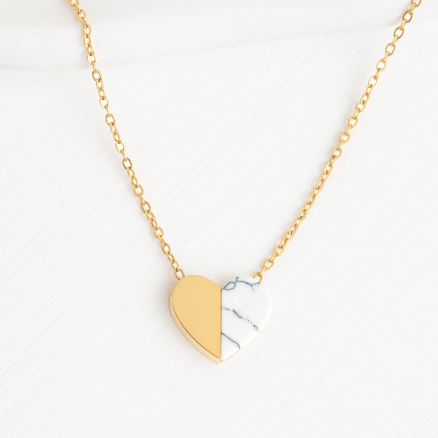 Materials: 14k gold plated and white turquoise howlite heart pendant on a 14K gold plated stainless steel chain