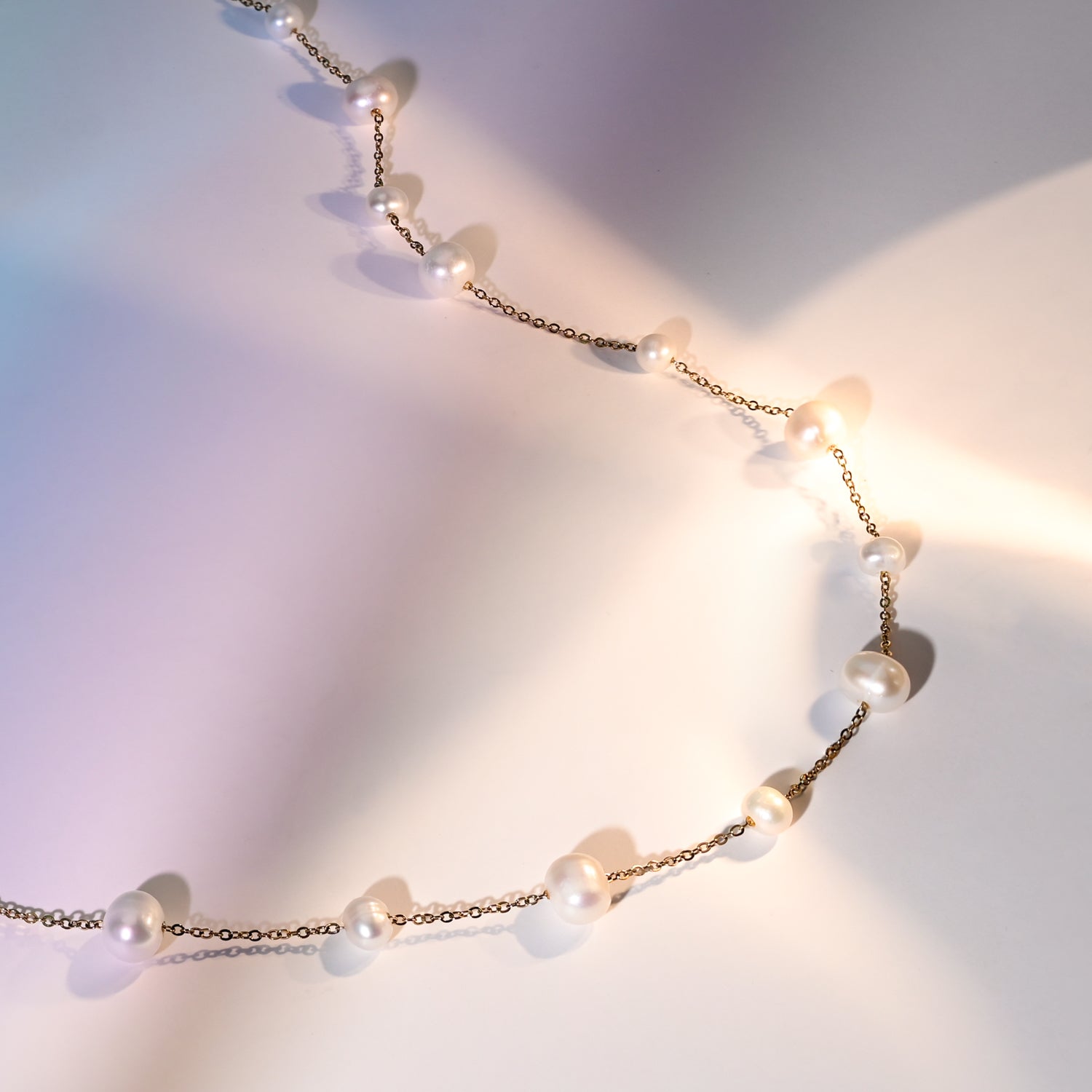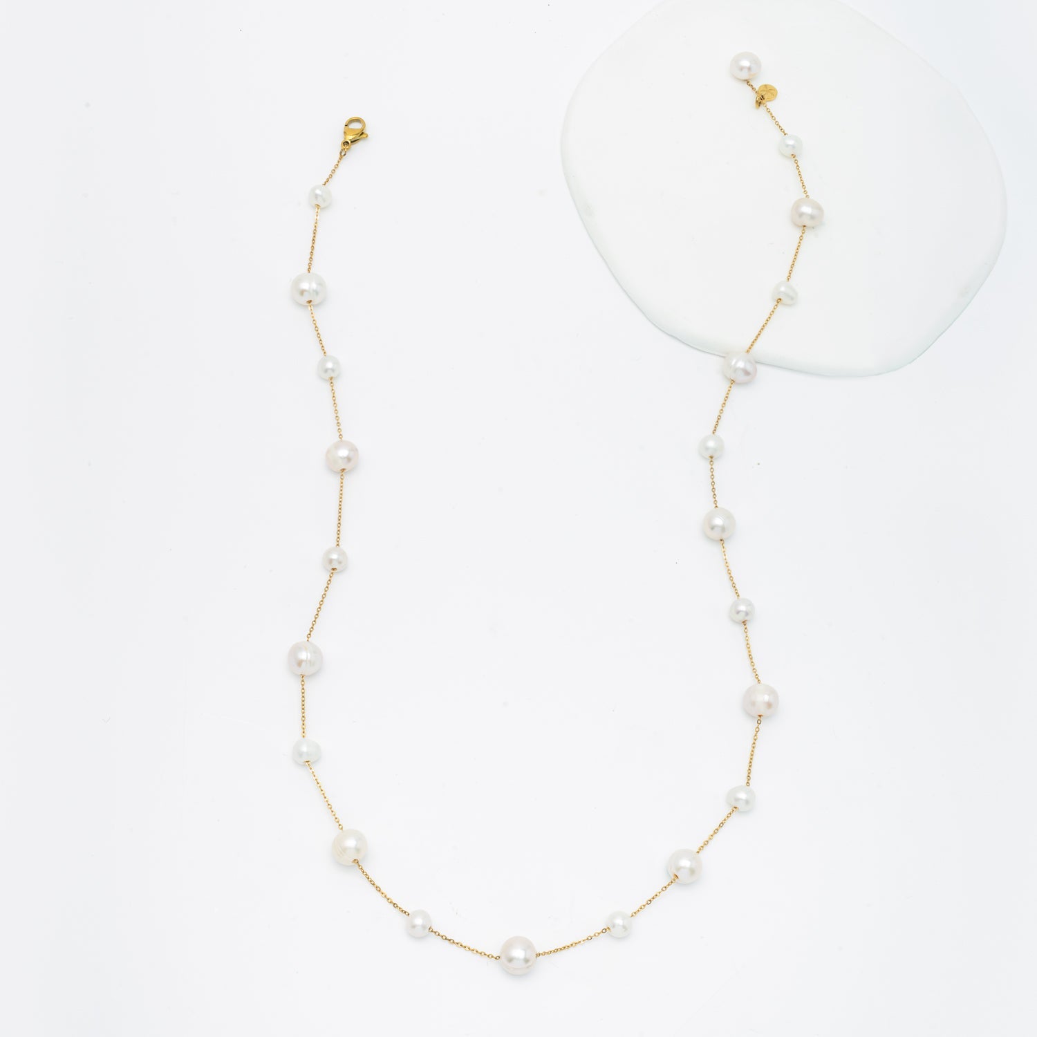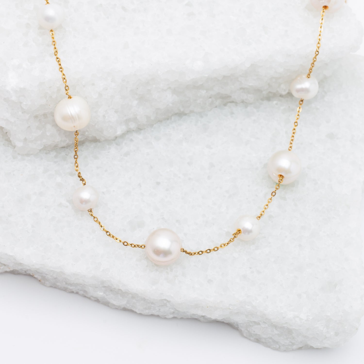 Materials: 14k gold plated brass chain with freshwater pearl necklace