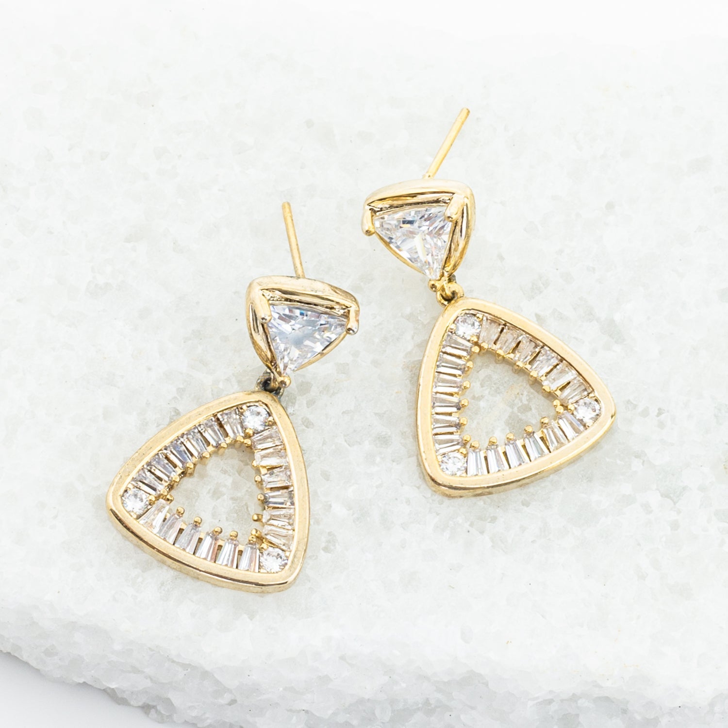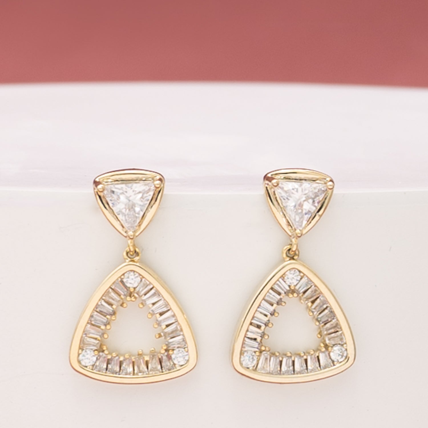 Materials: 14K Gold plated brass with zircon earrings.Hypoallergenic; lead and cadmium free with nickel content less than 100 ppm.