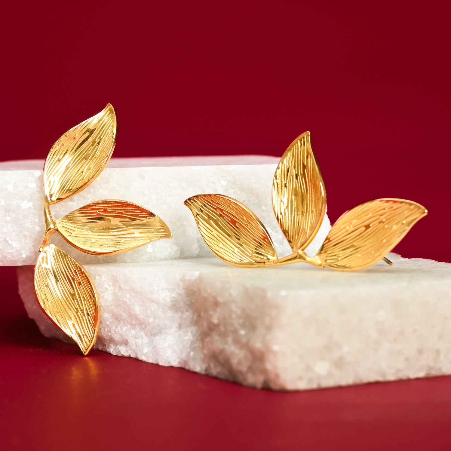 Make a bold yet elegant statement with the Golden Canopy Earrings. Inspired by the beauty of nature, these 18K gold plated, leaf-shaped earrings feature a striking structural design that effortlessly elevates any outfit. Whether you’re dressing up for a special occasion or adding a touch of sophistication to your everyday look, these earrings are the perfect choice. Each pair represents a journey of renewal and hope, as they are crafted by women rediscovering their strength and independence. With every purchase, you help create a world where second chances bloom.