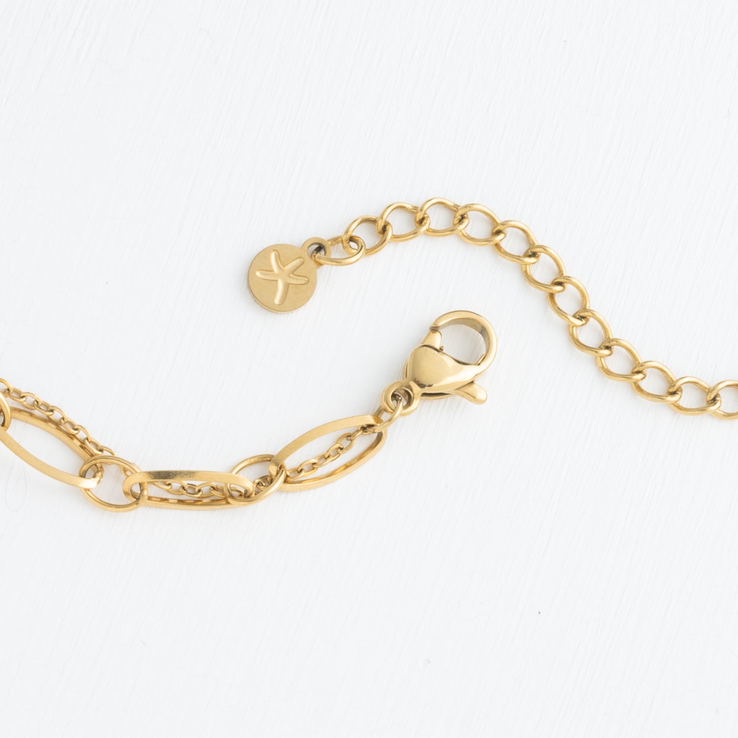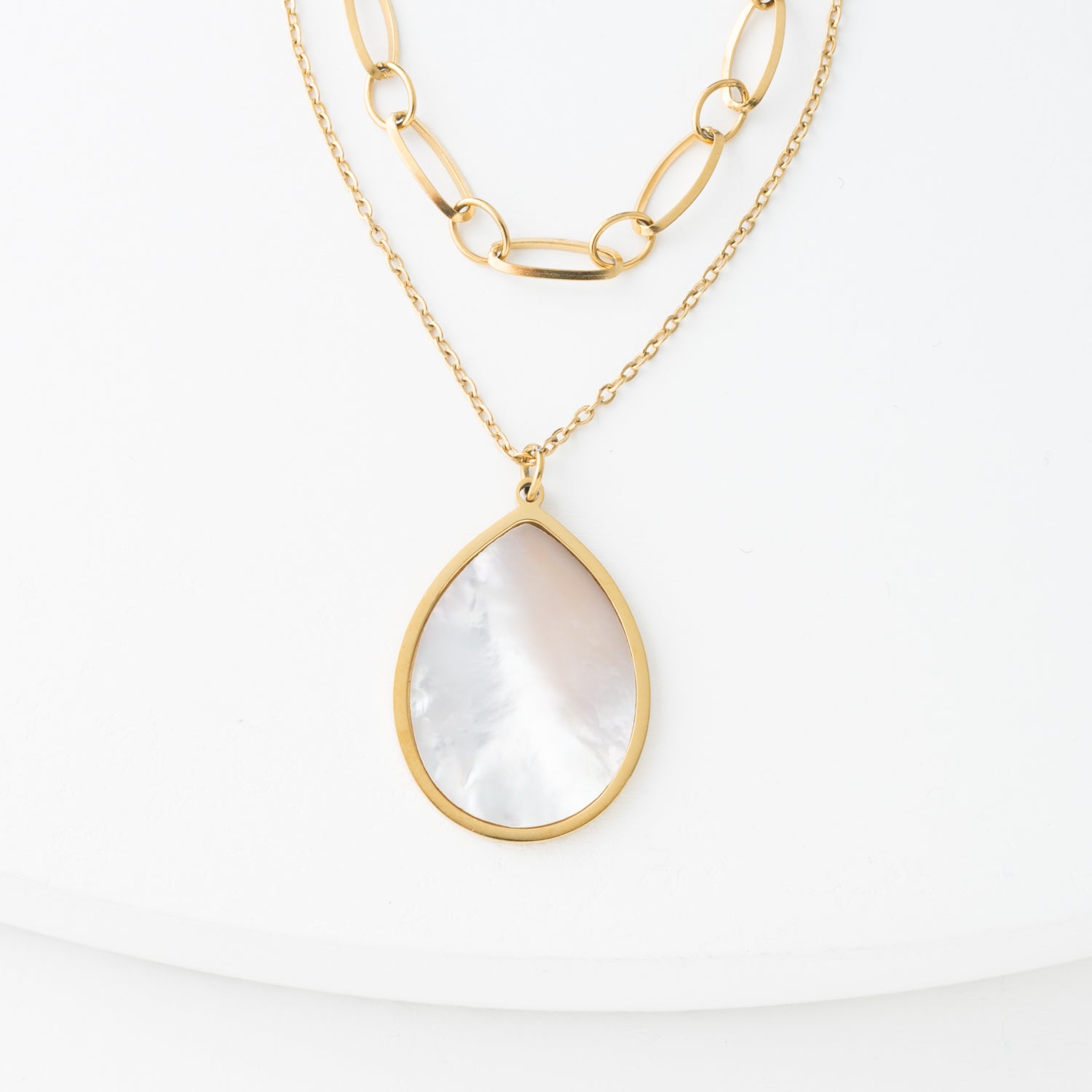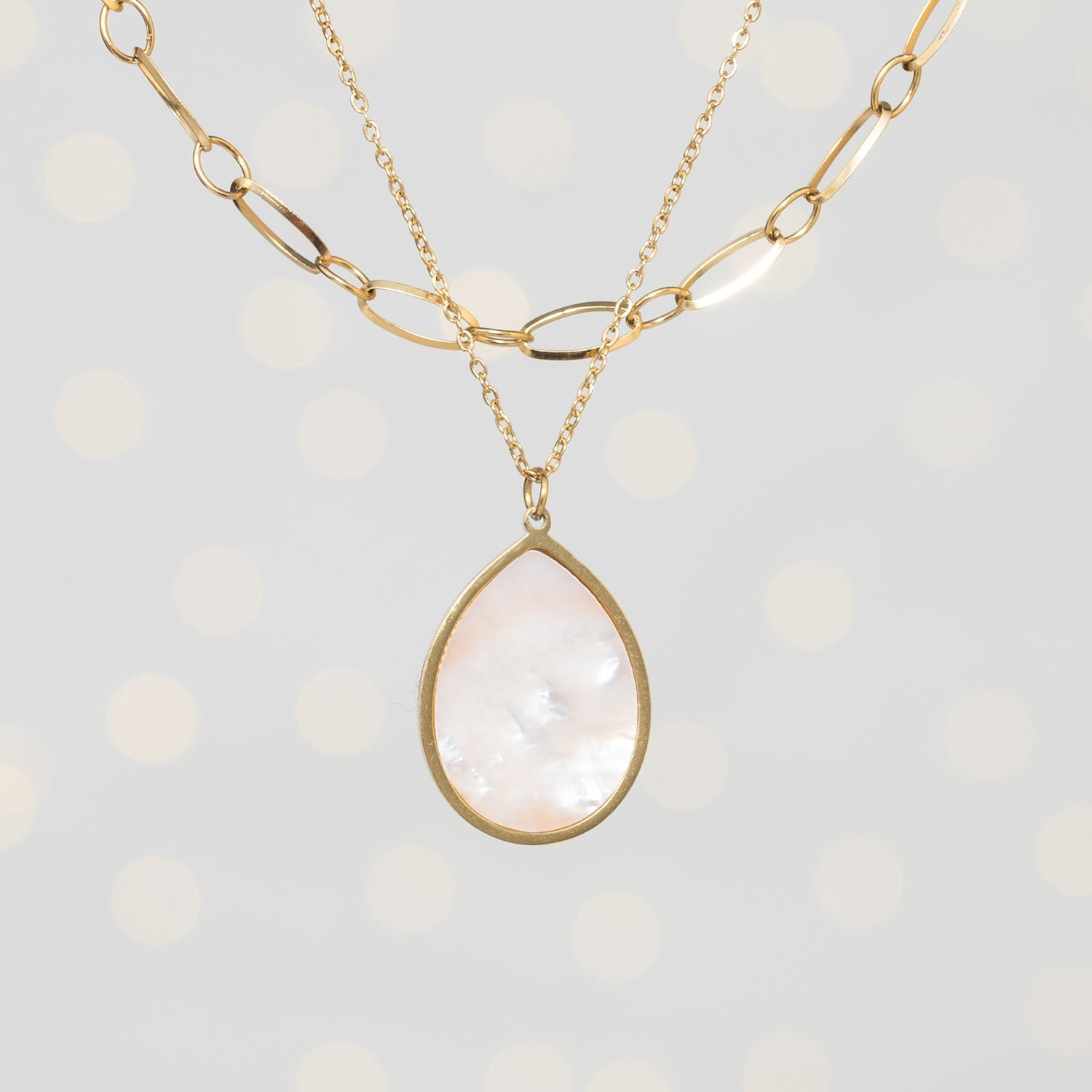 Materials: 14k gold plated stainless steel and mother-of-pearl necklace