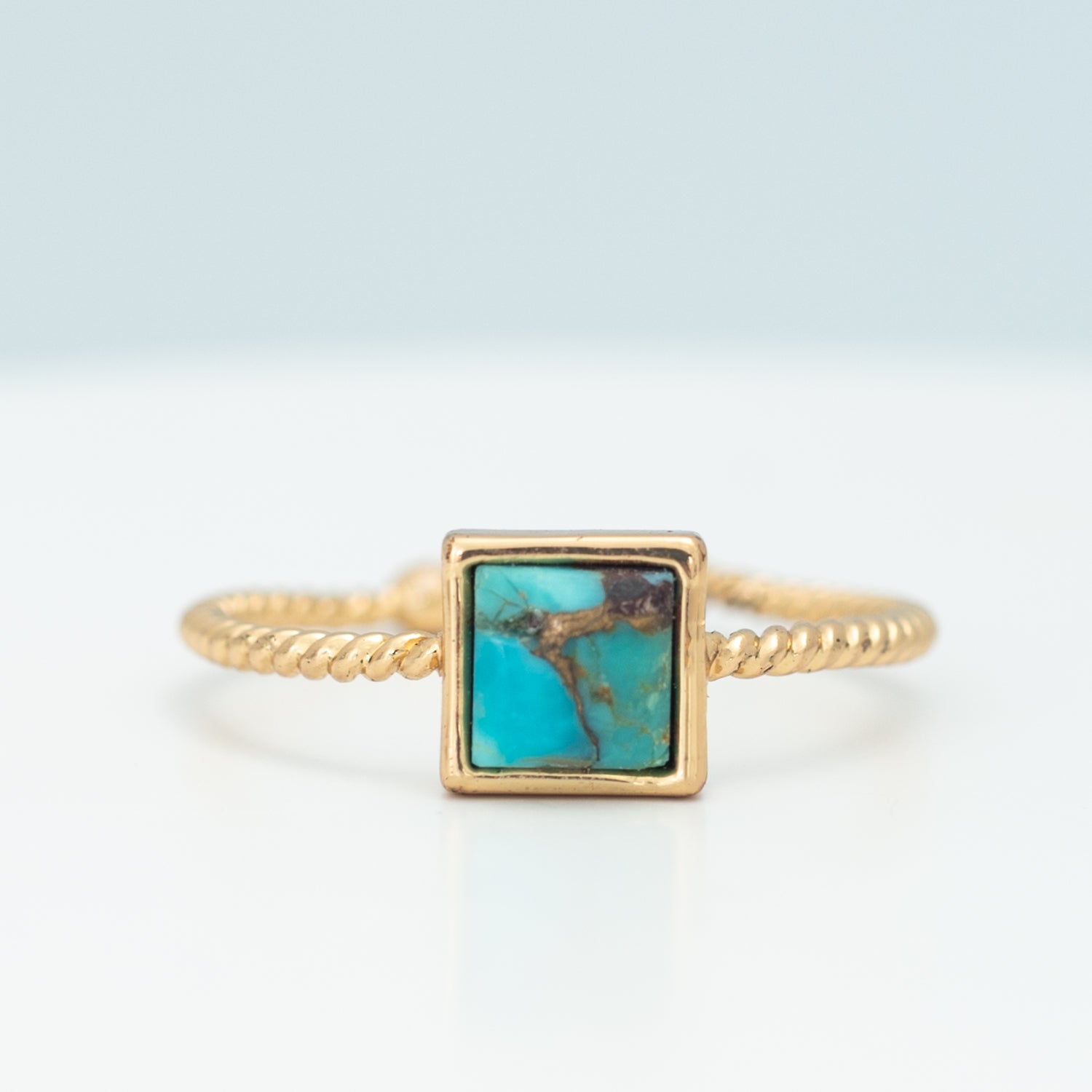 Materials: Turquoise howlite and 14k gold plated brass ring.Hypoallergenic; lead and cadmium free with nickel content less than 100 ppm.