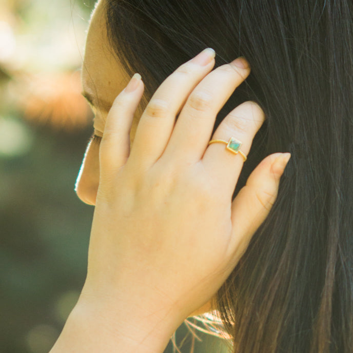 The Jayne Square Ring is a perfect fit every time. The timelessness of turquoise and the adjustable design makes it a great gift for anyone or a staple piece for yourself. What's more, the Jayne ring is equal to the cost of a whole month of life skills training. That is a gift worth giving!