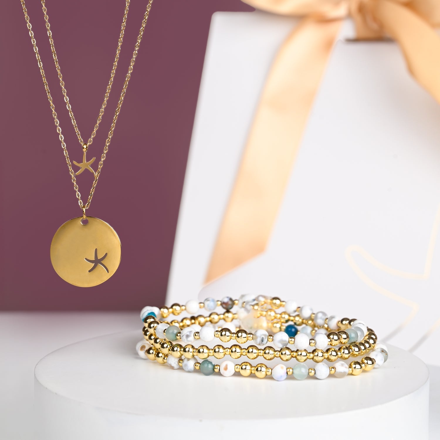 A gold & white signature Starfish Project box for each product