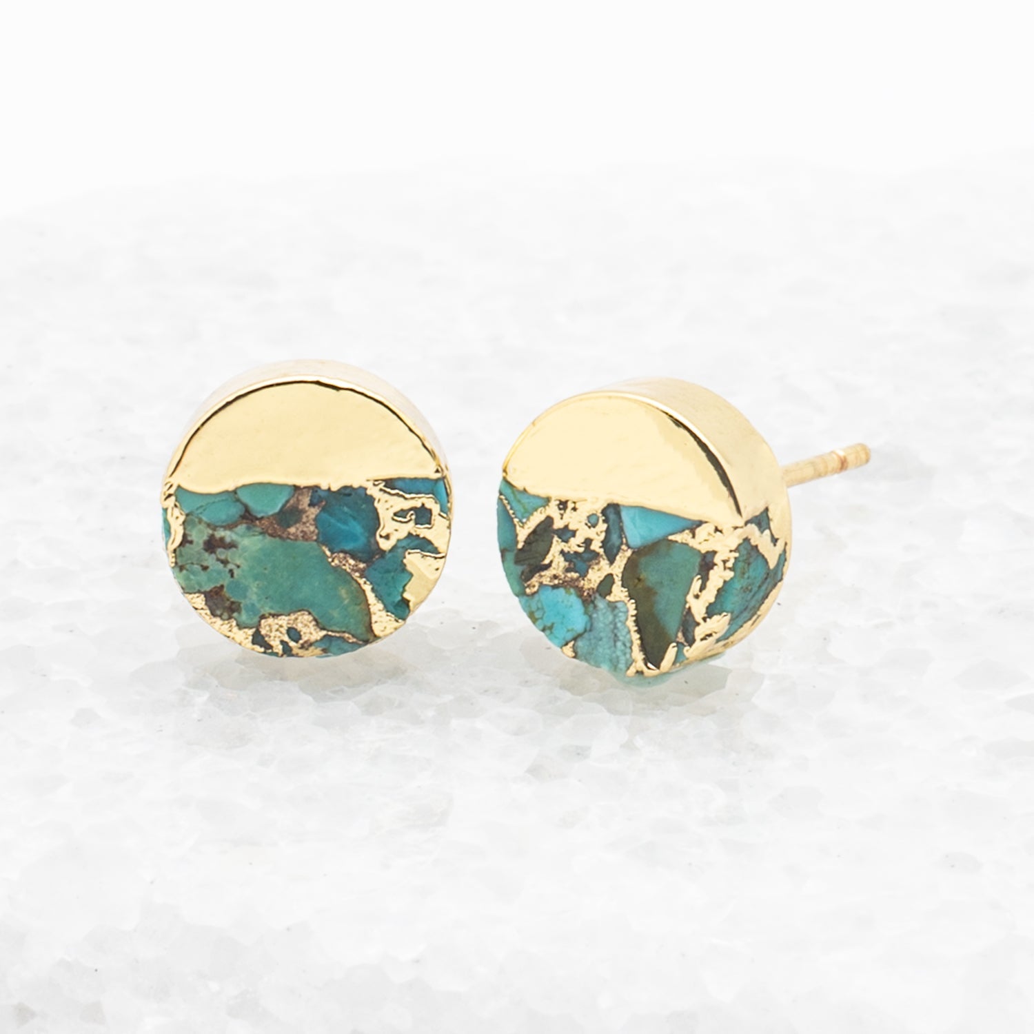 Our New Horizon Turquoise Studs feature natural turquoise inlaid with radiant 14k gold plating, creating a striking contrast of earth and elegance. Each pair is a one-of-a-kind reflection of nature’s beauty, making them a timeless addition to any collection (and a stunning gift!). Your purchase helps create paths of freedom so that survivors can take bold steps toward new horizons—offering hope, independence, and a future filled with opportunity. That incredible impact never goes out of style!